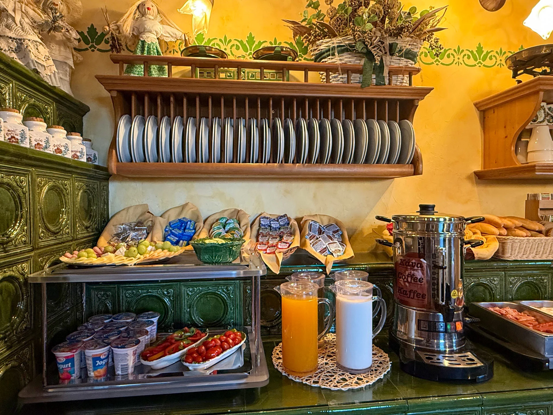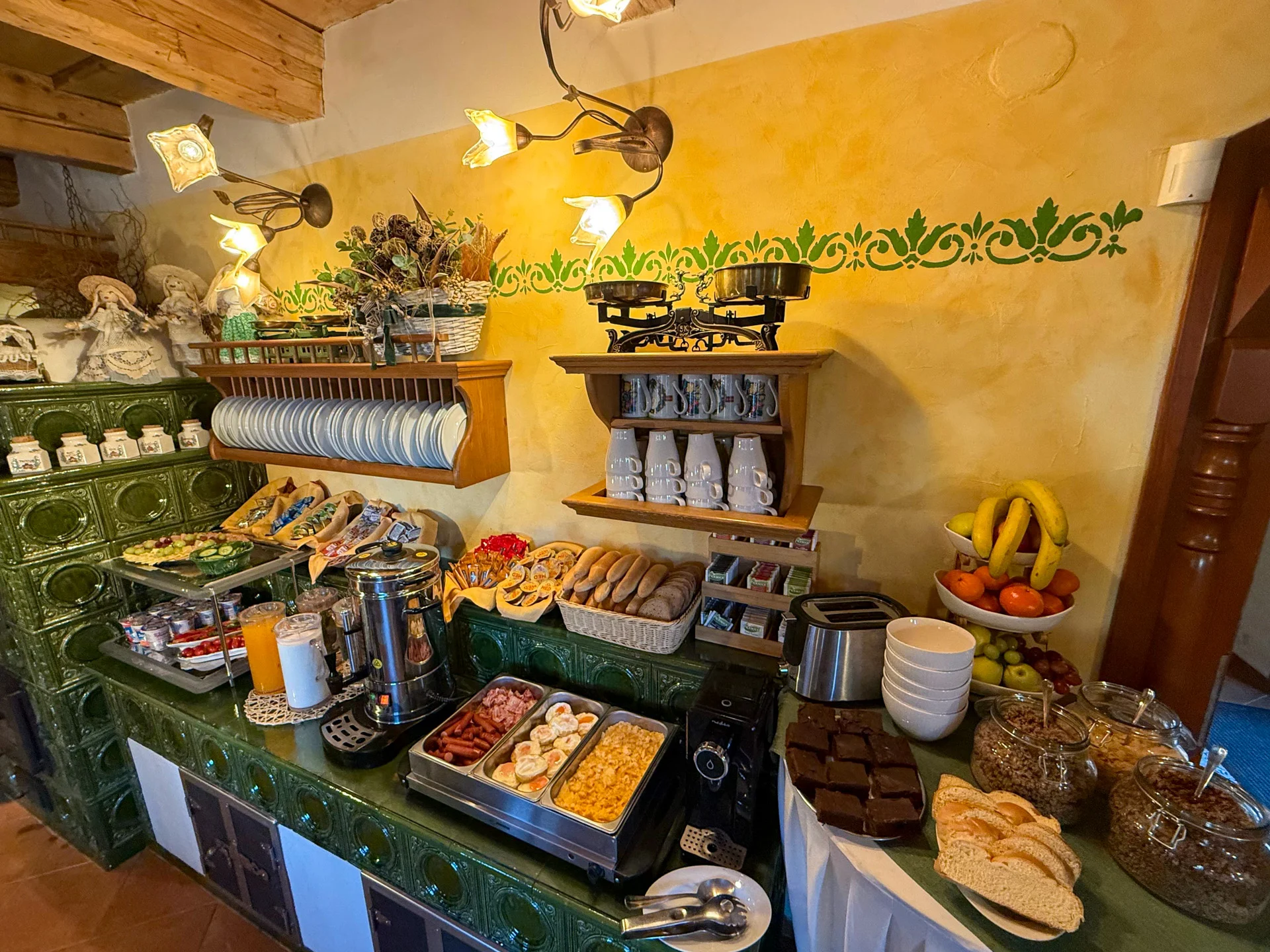 Podává formou bufetu v rustikálním salonku s kachlovými kamny. K snídani nabízíme teplou i studenou kuchyni.